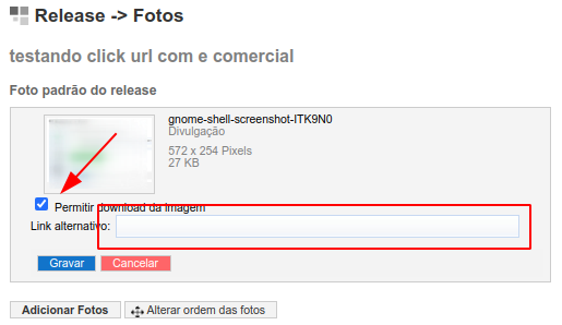 A foto principal do release é a única que pode ter o recurso de link alternativo, vamos falar mais sobre isto em outro momento, mas basicamente este recurso faz com que a imagem principal seja um link que vai levar o leitor para uma página onde ele deve executar alguma ação, recurso muito útil para um RSVP ou cadastro de diversos tipos.